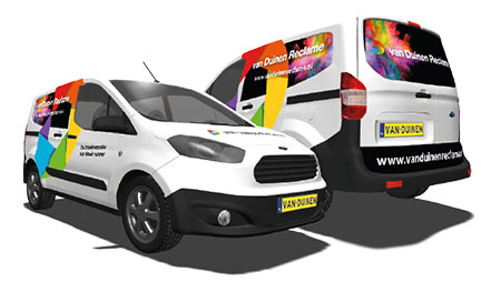 Onze specialiteiten omvatten autobestickering, spandoeken, reclameborden, interieurdecoratie, kledingbedrukking, drukwerk en stickers. We hebben uitgebreide ervaring in al deze gebieden.